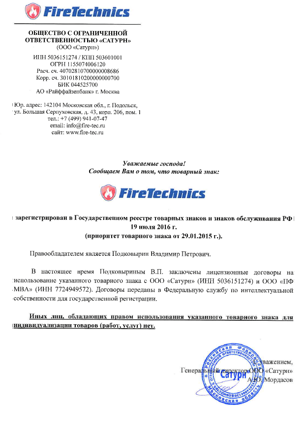 Уважаемые клиенты и партнеры! Группа компаний FireTechnics обладает сетью [...]